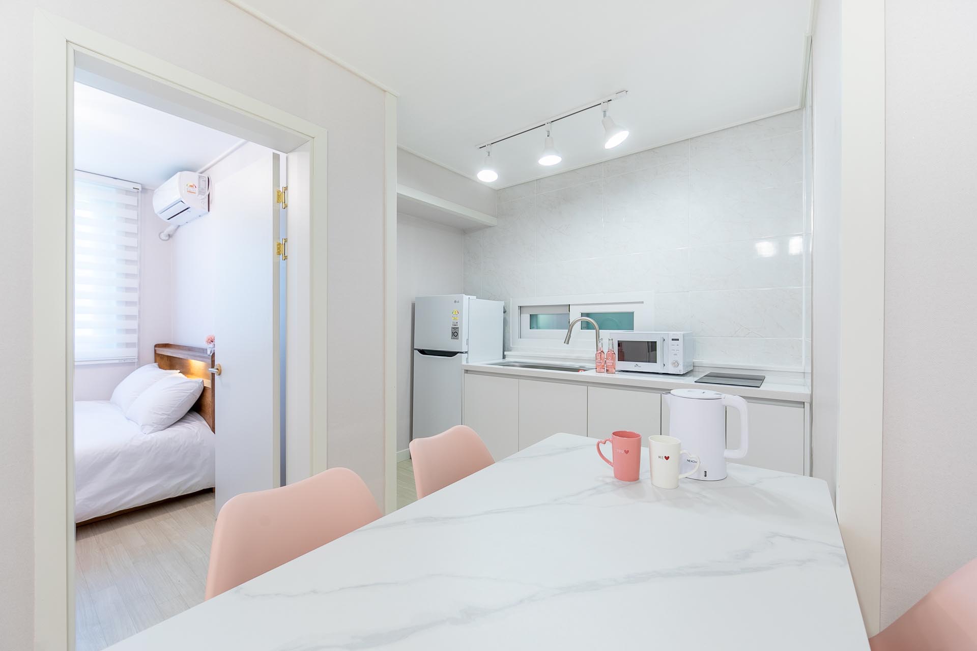 * 기본시설 : 호텔식 침구,침대, 벽걸이TV, 에어컨, 식탁